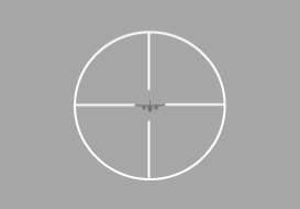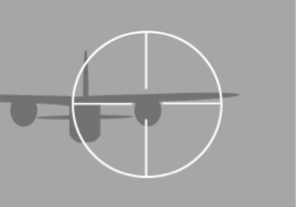 標的の移動方向に注目せよ。 貴官の追従が正確でなければ偏差も無意味だ。 標的が少しずつ偏差リングの中心にくるようにせよ。 この位置では偏差は依然2Rのはずだ。 すでに標的は巨大にみえるだろう。 しかし、それは錯覚である。 標的は偏差リングの直径にピッタリあてはまる。 つまり、距離は300m。