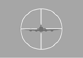敵は右旋回から左旋回へ転じようとしている。 旋回を切り返したので敵は真正面にいる。まっすぐ狙え! |